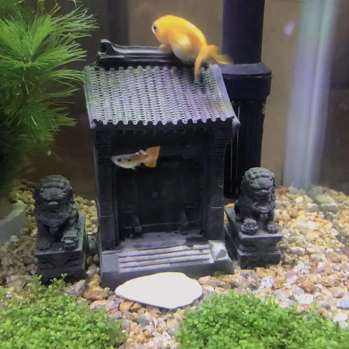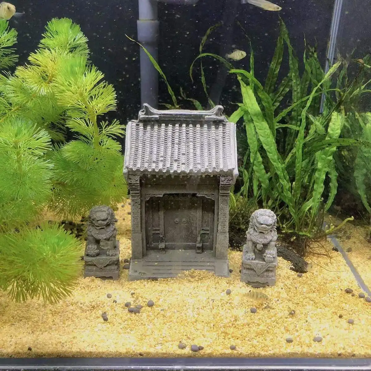 Fish Tank Landscaping Decoration Antique Courtyard Gate Cement Lion Statue Ornaments Miniature Ancient Gate Aquarium Decorations